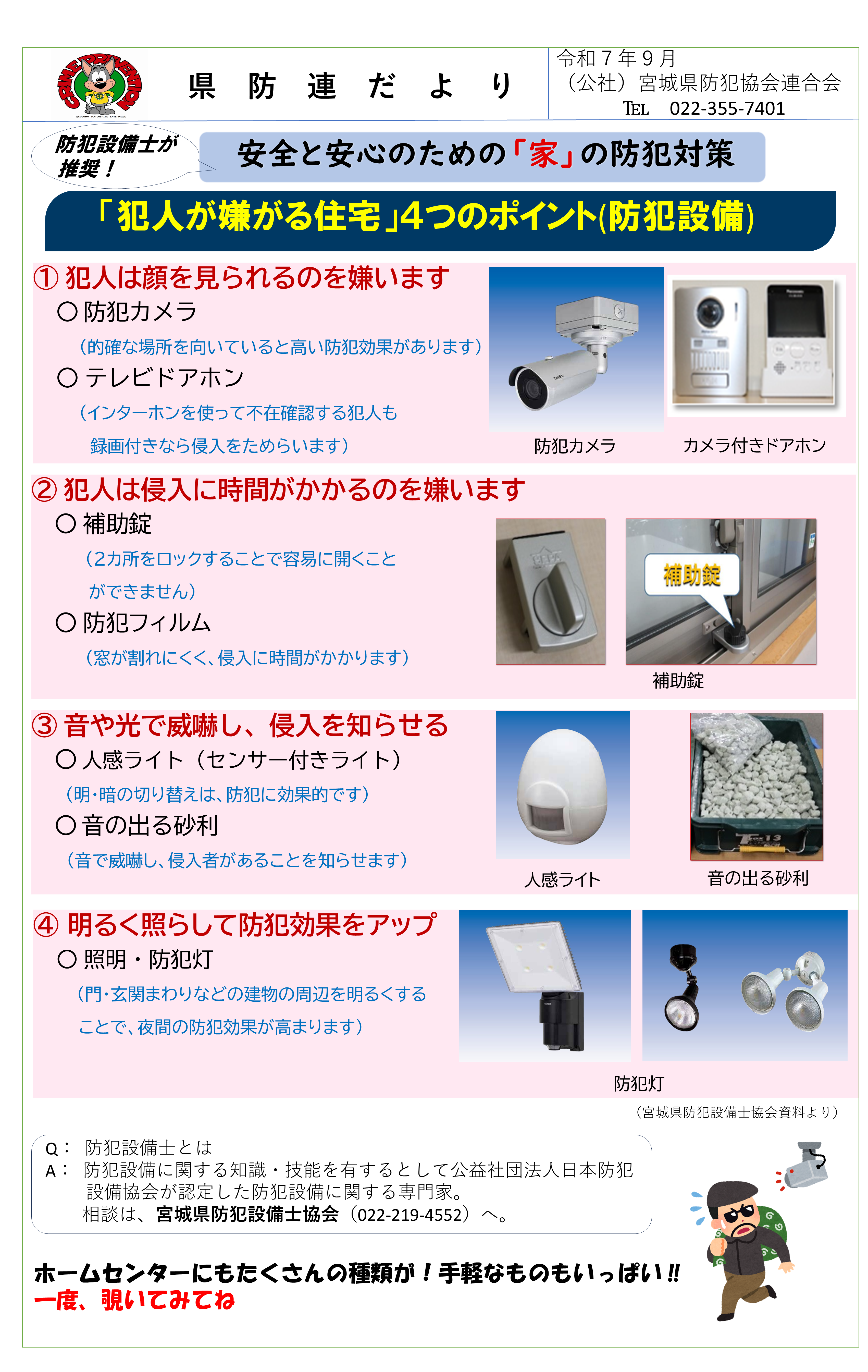 (公社)宮城県防犯協会連合会では、「家」の防犯対策として有効な防犯設備を広く普及させるため「県防連だより」を作成しましたので紹介します。