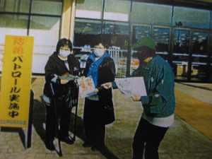 山の手分会では、地区内で灯油が道路に撒かれたり、忍び込みなどの事案が発生していることから、防犯実働隊、同婦人部22人が教師や父兄、町内会などと連携して、パトロールを実施しました。また、これら事案の発生状況が掲載された石巻駅前交番が作成した広報紙を各町内会と連携しながら全戸に回覧しました。