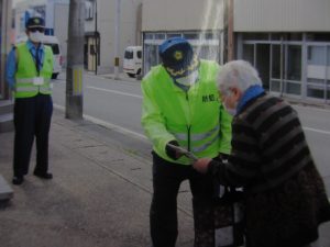 北分会は春の地域安全運動期間中4日間、防犯実働隊、同婦人部員から8人が参加して、広報車を活用した防犯パトロールや中里、住吉の各小学校周辺での見守り活動などを行いました。