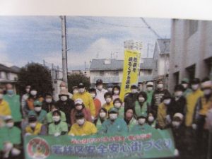 若林区防犯協会連合会傘下の南材地区防犯協会は、全国地域安全運動の一環として10月19日(火)、関係団体から約60人が参加し、「安全安心地域推進大会」を開催しました。この取組みには、南材地区内の各町内会、若林区役所、仙台市社会福祉協議会若林区事務所、若林警察暑等が参加しました。最初に、主催者や警察から“高齢者を狙った特殊詐欺の予兆電話が河原町地区でも多発している。広く被害防止の呼び掛けをお願いしたい”などと挨拶がありました。その後、3コースに分かれてパレードを行ったほか、途中、落書きの消去や路上のゴミ拾いなど環境美化の活動にも取り組みました。